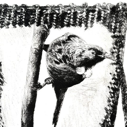 Tui in a Kete - Limited Edition Dry Point Etching Print (LAST ONE)