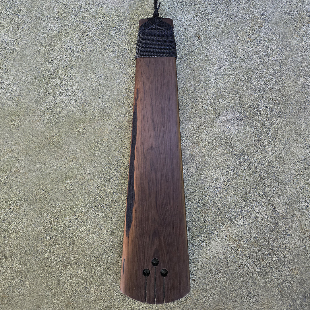 "HUKUMARO" is a River Matai wood artwork that interprets the concept of time through the elegant form of a bird's tail. Shannon uses the "Past Present Future" symbol to represent the interconnectedness of generations. The unique qualities of the river matai enhances the visual impact of the piece. The title, "HUKUMARO" (tail of a bird, tail feather), becomes a symbol of movement, direction, and the ongoing flow of time.
