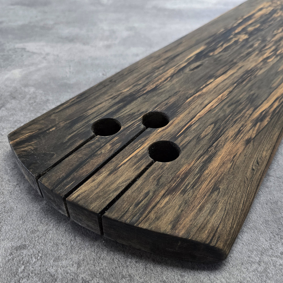 Finished in Danish Oil. Black Cord. Reclaimed River Rimu.
