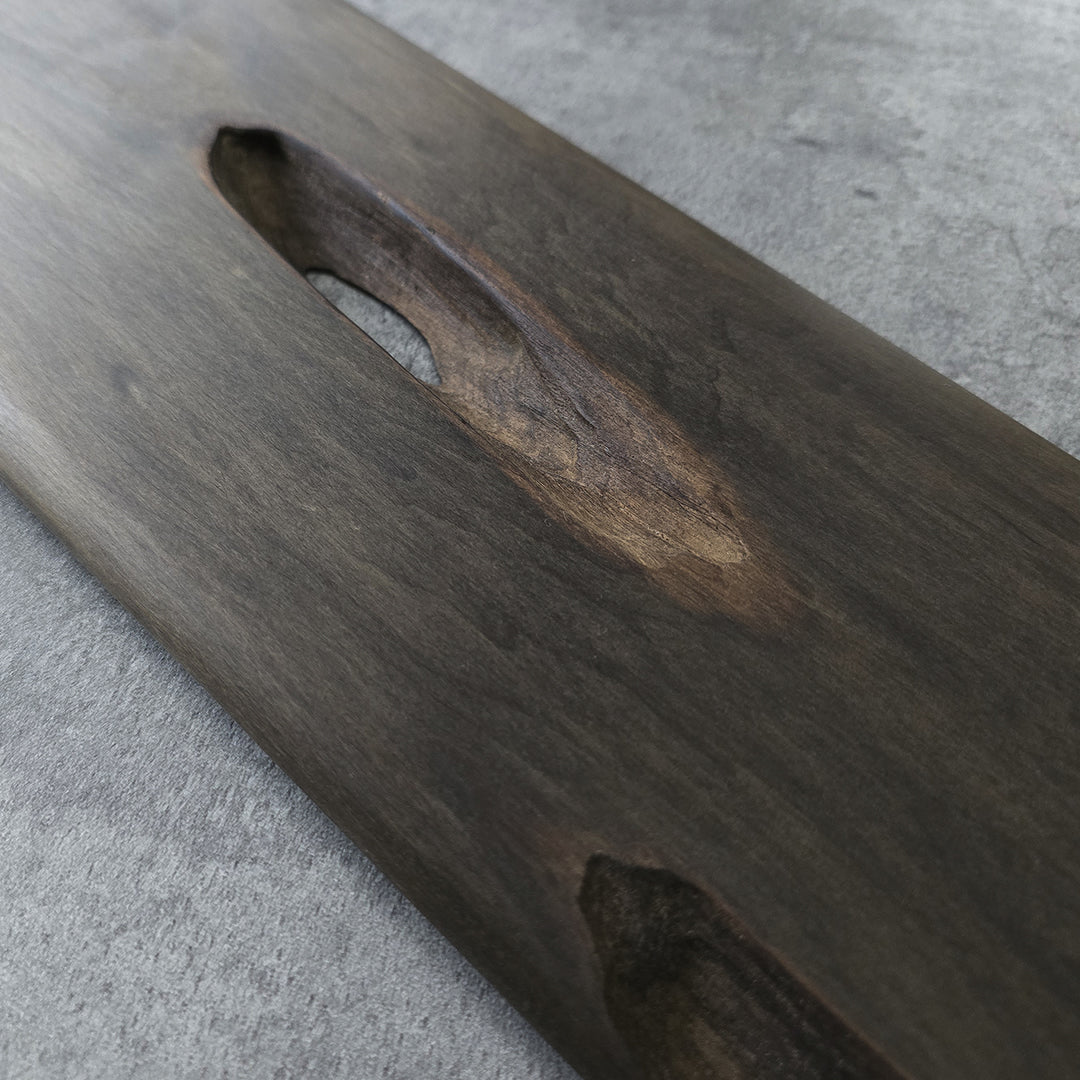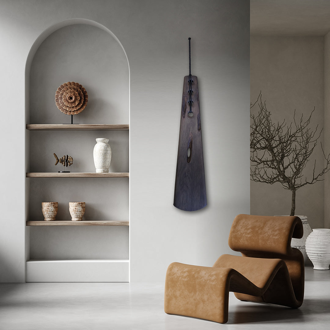 "PŪHEKE," a captivating artwork sculpted from reclaimed River Rimu, embodies the profound meaning of 'to flow.' The wood itself, with its unique tones and areas where the river has naturally etched its surface, tells a story of its own fluid journey. This wall hanging visually represents the serene and powerful motion of water, inviting contemplation on the natural currents of life. The artist has skillfully utilized these natural characteristics, creating a piece that honors the beauty of an organic, ever-moving existence.