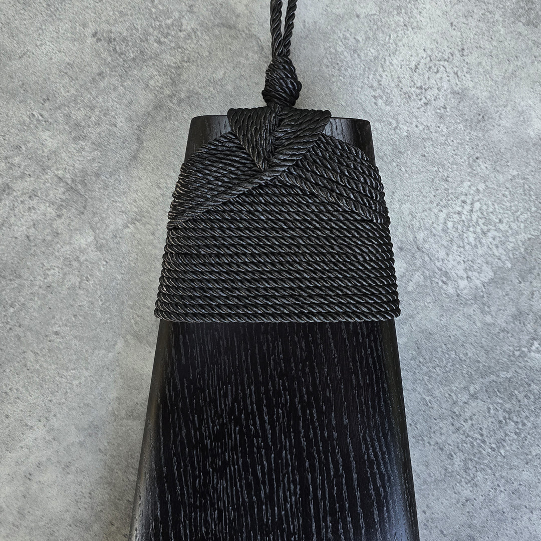 Finished in Danish Oil. Black Rope. Reclaimed Burnt Ash.