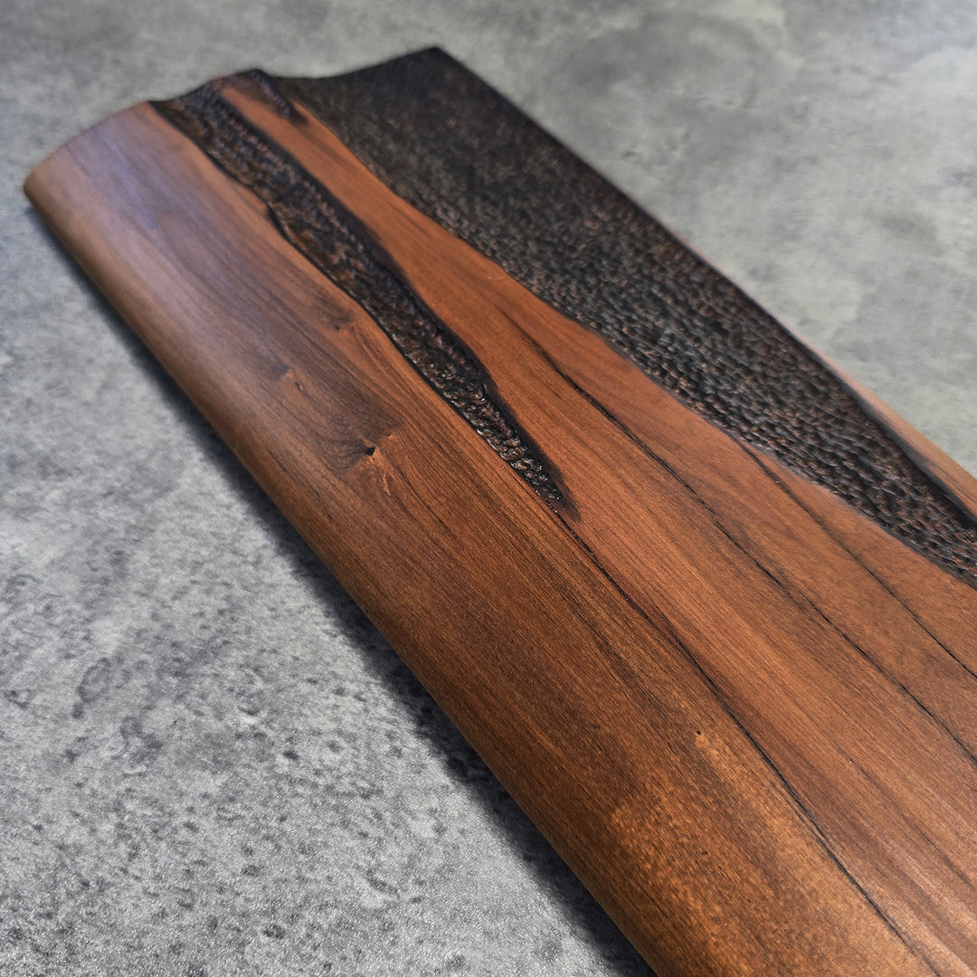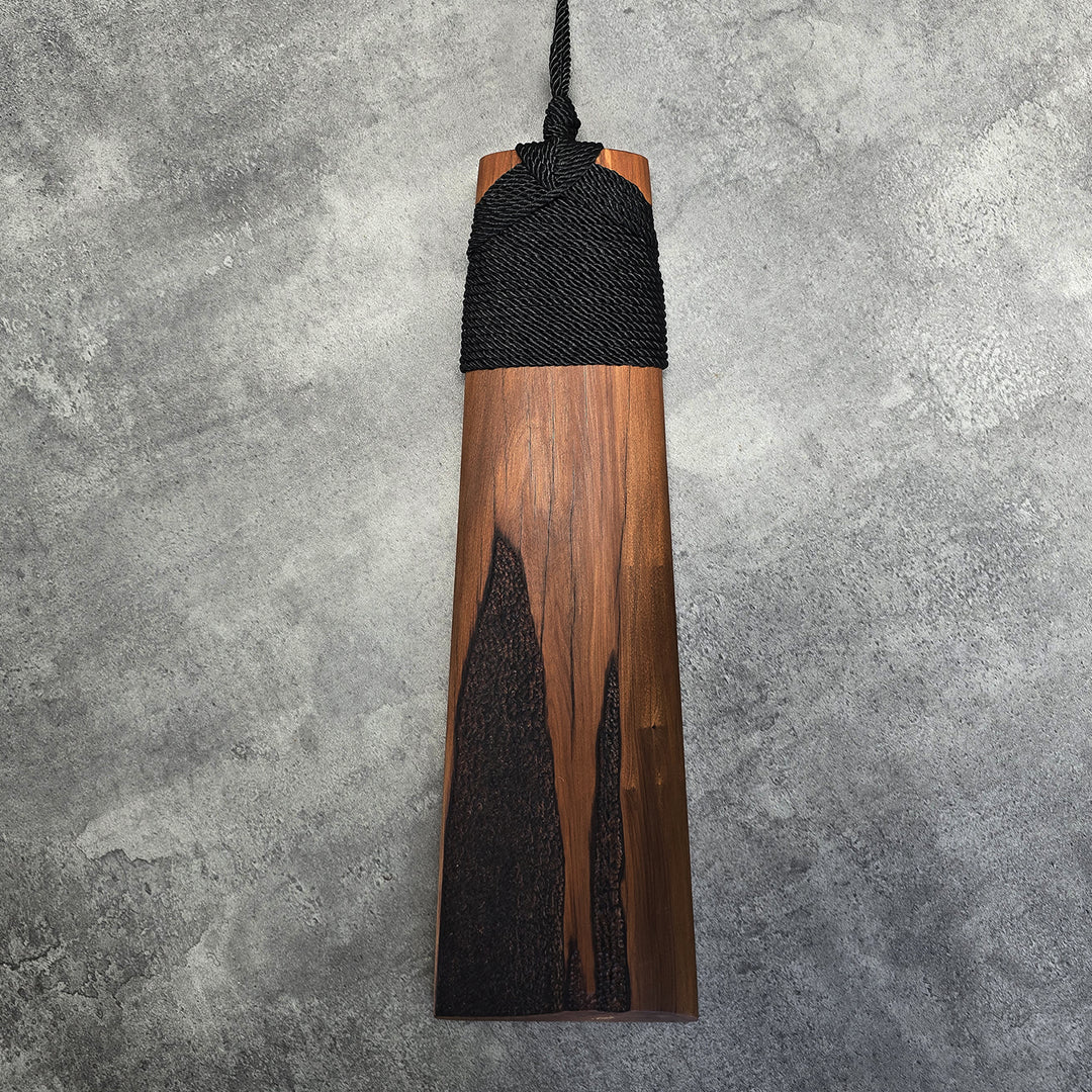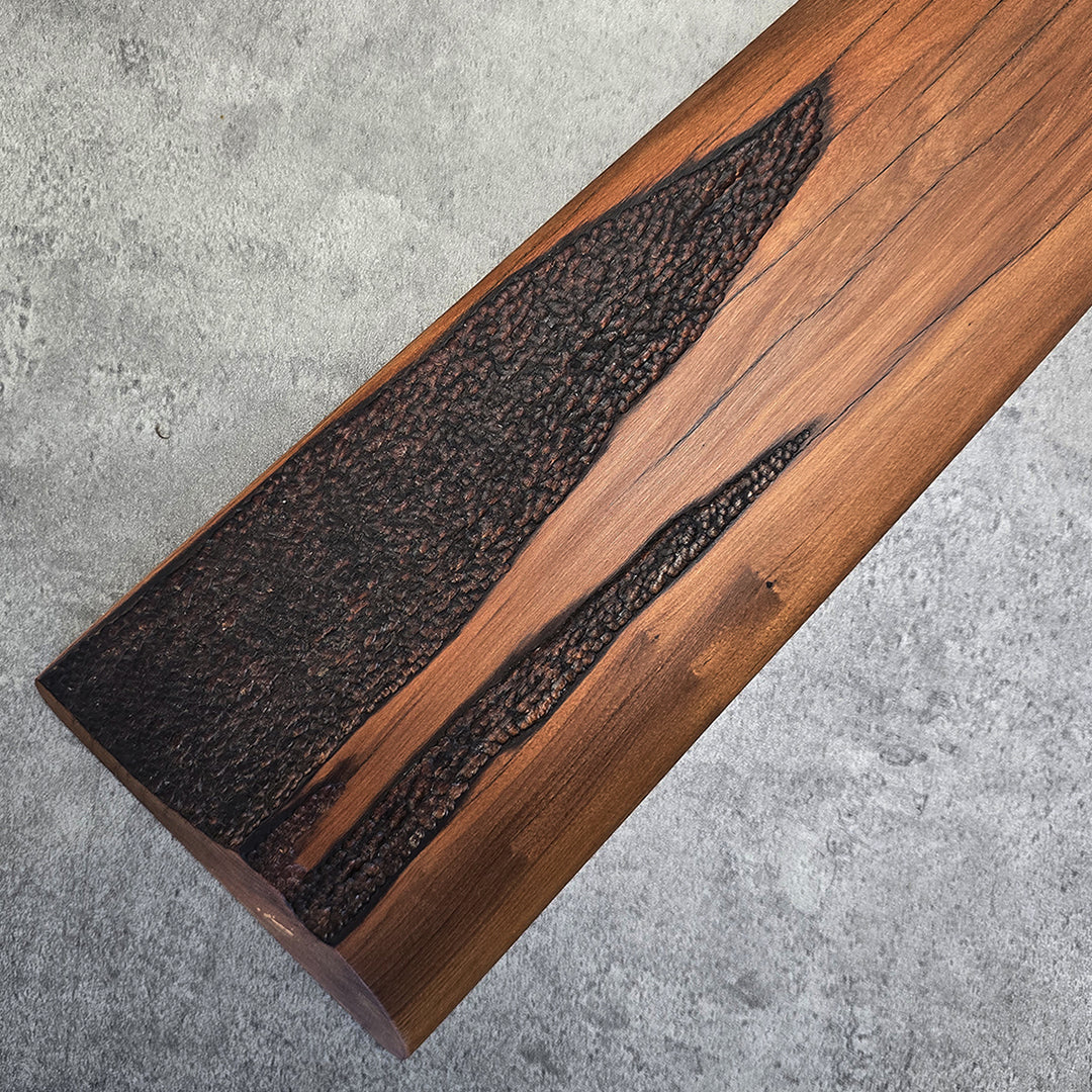 "TOKI" a wall hanging sculpted from exquisite River Matai wood, offers a contemporary interpretation of the traditional Māori adze. Shannon has skillfully highlighted the natural beauty of the River Matai with its intricate grain patterns and varying tones, to enhance the Toki's iconic silhouette. This piece adds a touch of cultural artistry and natural warmth to any wall.