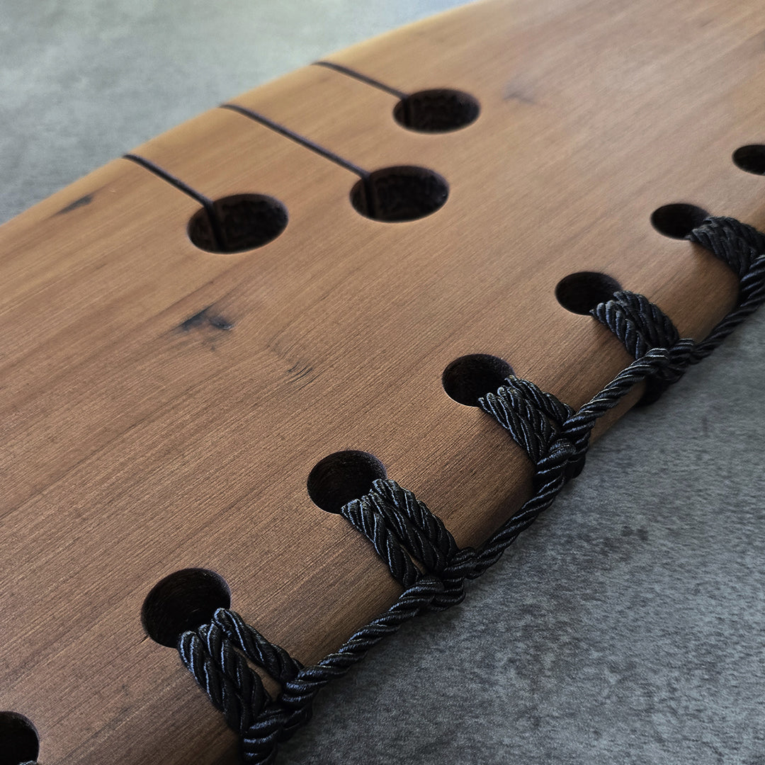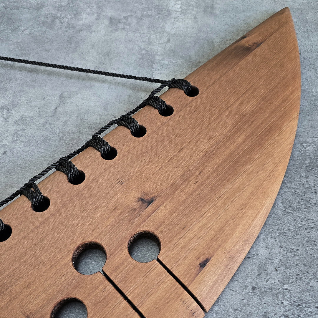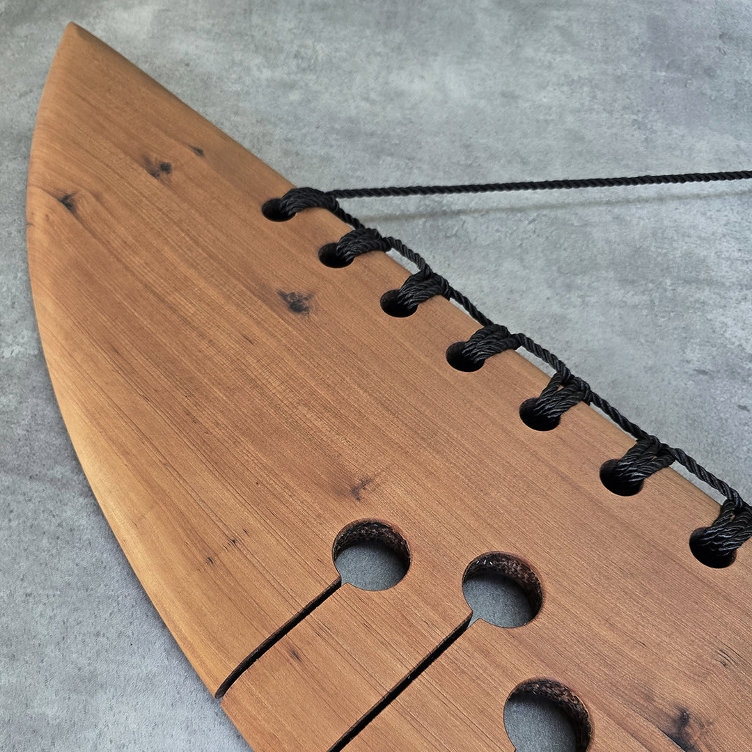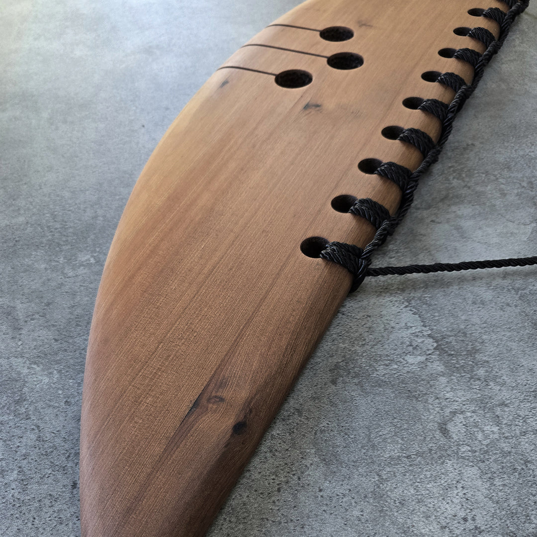 "WHAKAKOTAHI" is a River Totara piece that embodies the concept of Unity across time. The enduring nature of the River Totara, a timber that has witnessed generations, is a fitting medium for this exploration of "Past Present Future." The binding at the top visually connects friends and whānau, symbolizing their collective strength and shared journey through time.